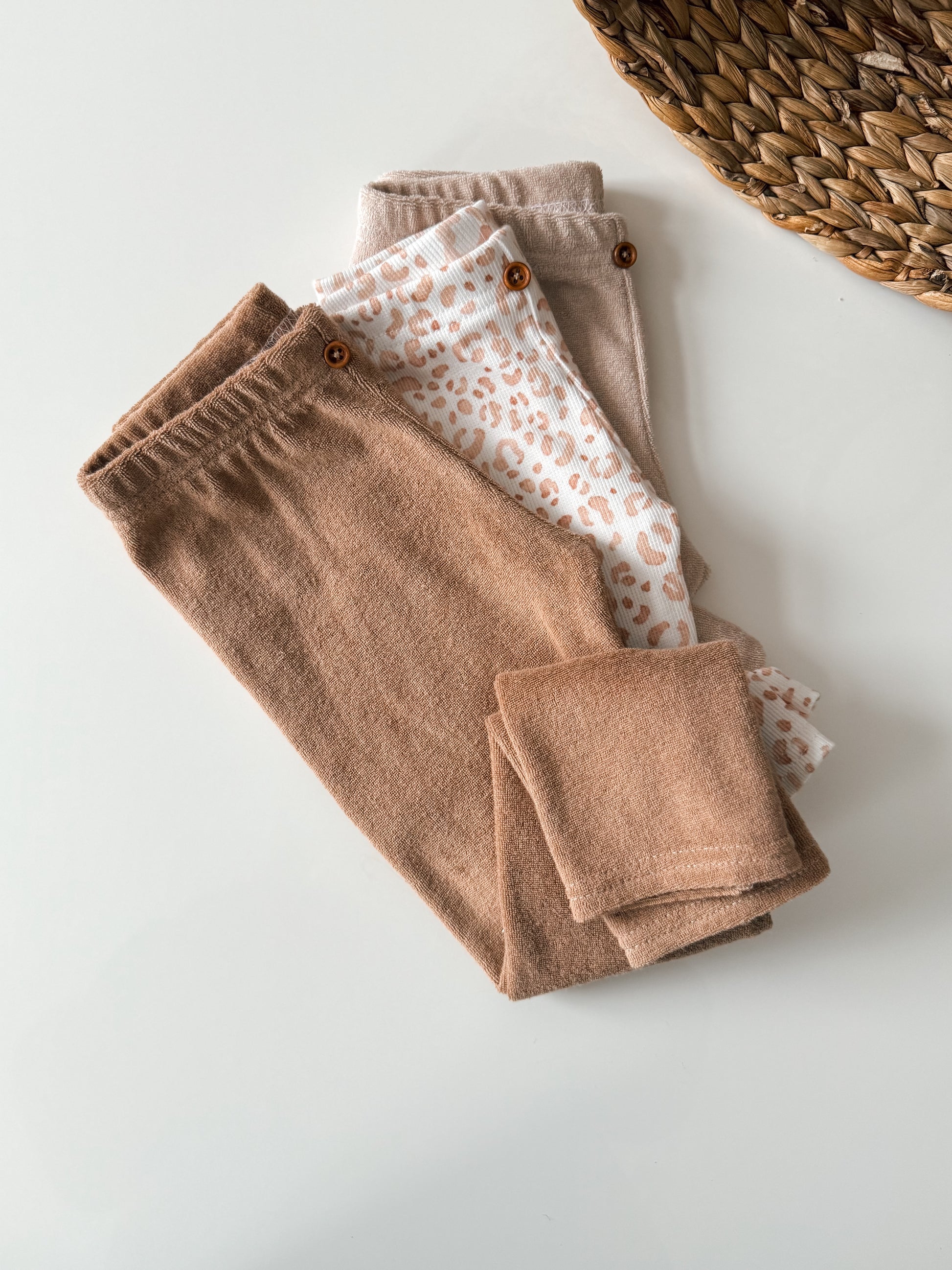 Handgemachte Baumwolle-Frottee Leggings für Babys & Kinder – in Beige oder Braun