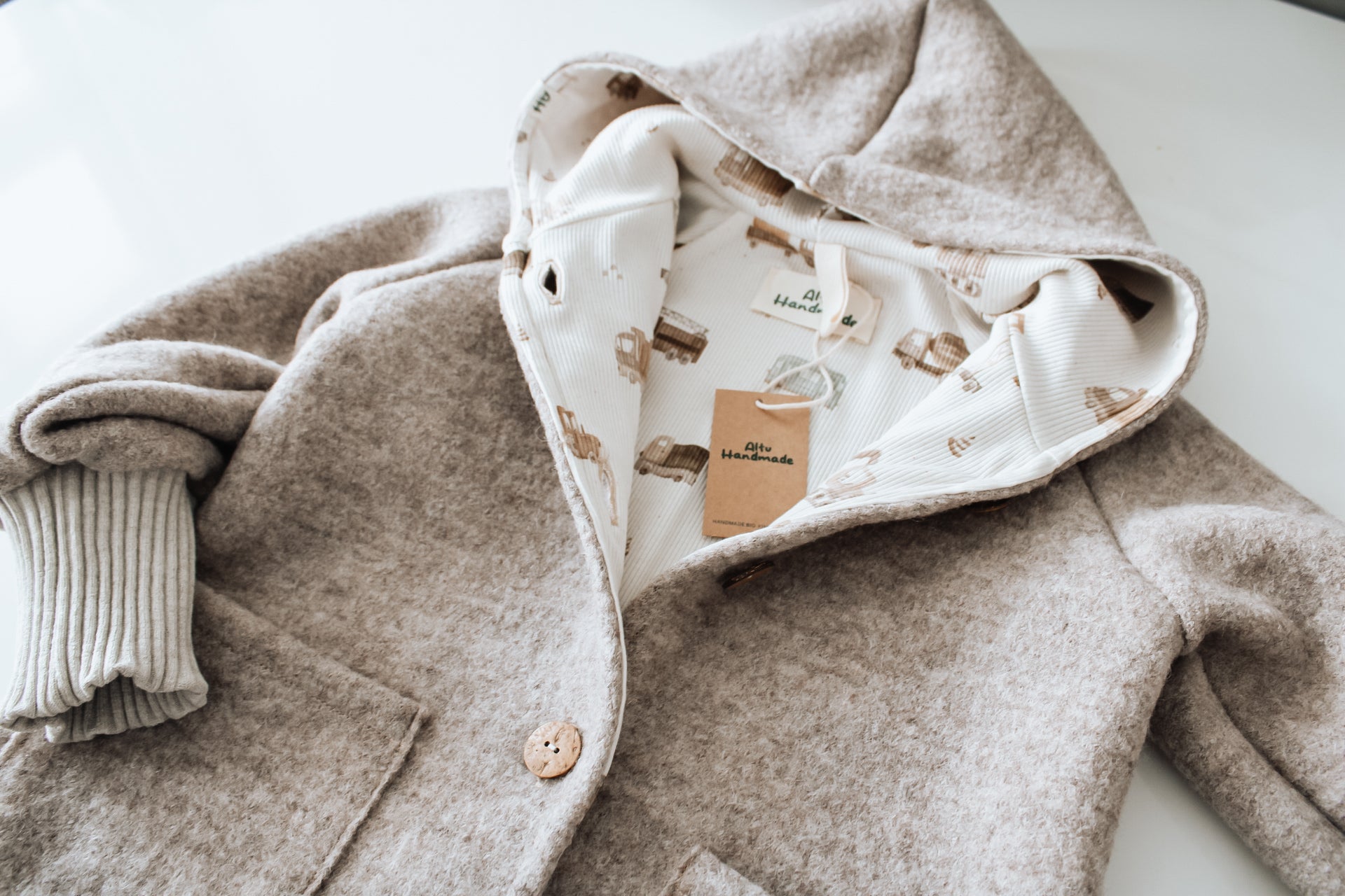 Diese einzigartige Walkjacke vereint Funktionalität, Wärme und kindgerechtes Design. Mit viel Liebe handgefertigt, begleitet sie dein Kind zuverlässig durch kühle Tage – und sieht dabei einfach bezaubernd aus.