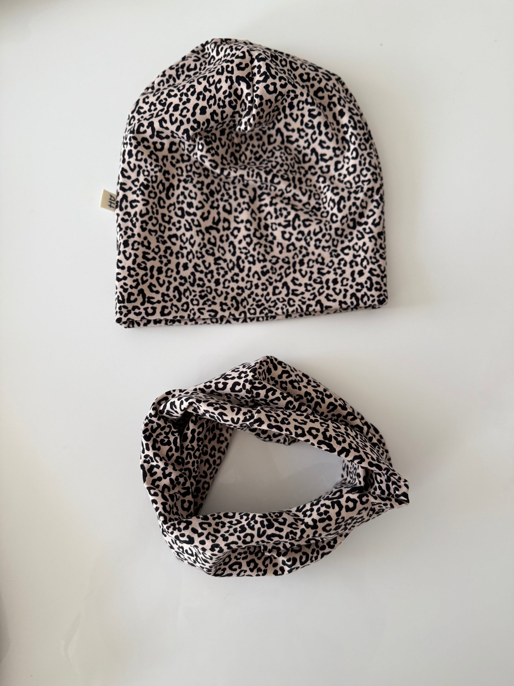 Leopardenmuster Mütze & Loopschal aus Baumwolljersey – Handmade für Babys & Kinder