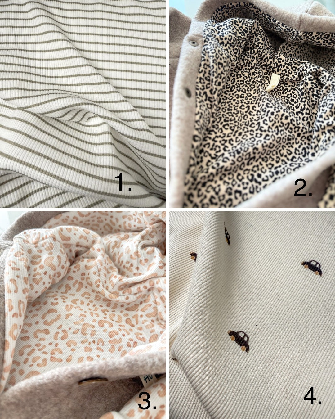 - Innenstoff: Baumwolljersey oder Rippjersey 95% Baumwolle 5% Elasthan (Farbe frei wählbar)