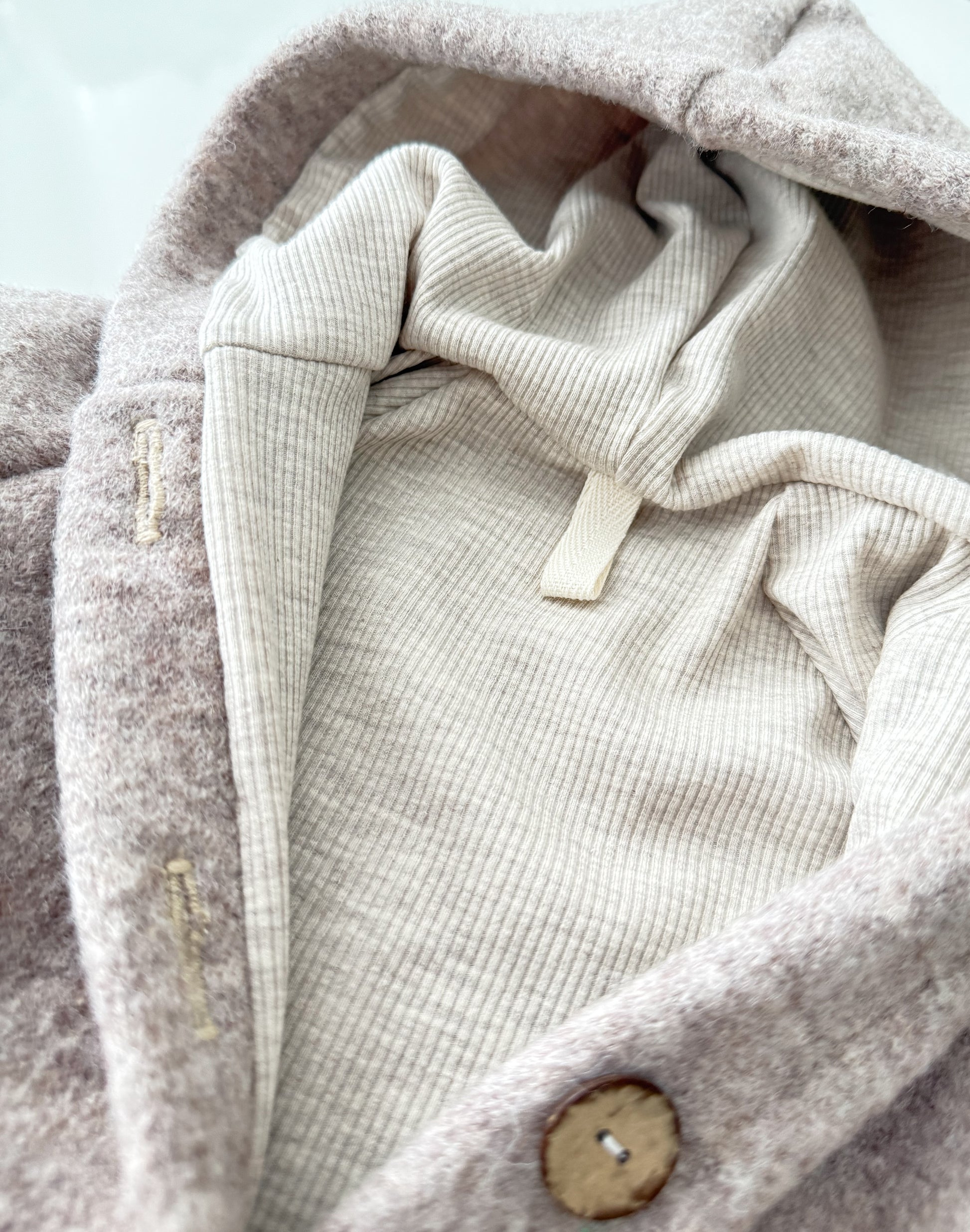 Unser hochwertiger Walkoverall für Babys und Kinder ist der perfekte Begleiter im Herbst und Winter. Gefertigt aus atmungsaktiver, temperaturausgleichender Schurwolle in Beige Meliert und kombiniert mit weichem Rippjersey aus Baumwolle in Beige, sorgt er für wohlige Wärme und höchsten Tragekomfort.